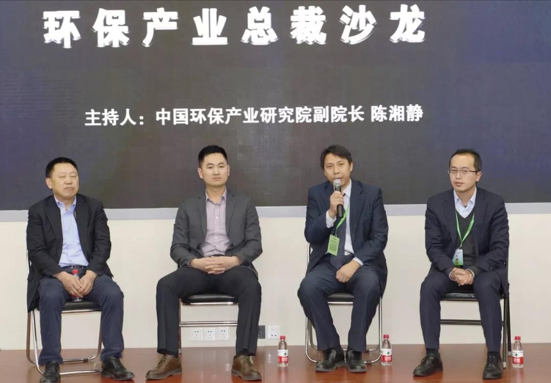 在环保产业总裁沙龙环节,高能环境副总经理胡云忠与同行企业家探讨环保问题。